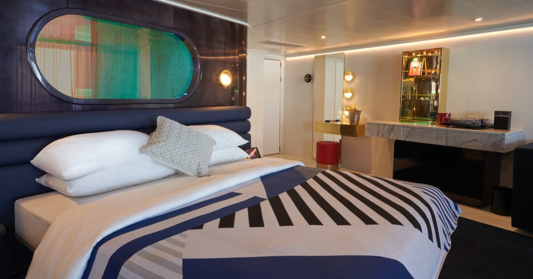 The Brilliant Suite is part of the RockStar cateogry of cabins on Virgin Voyages Scarlet Lady, Valiant Lady, Resilient Lady, and Brilliant Lady ships.
