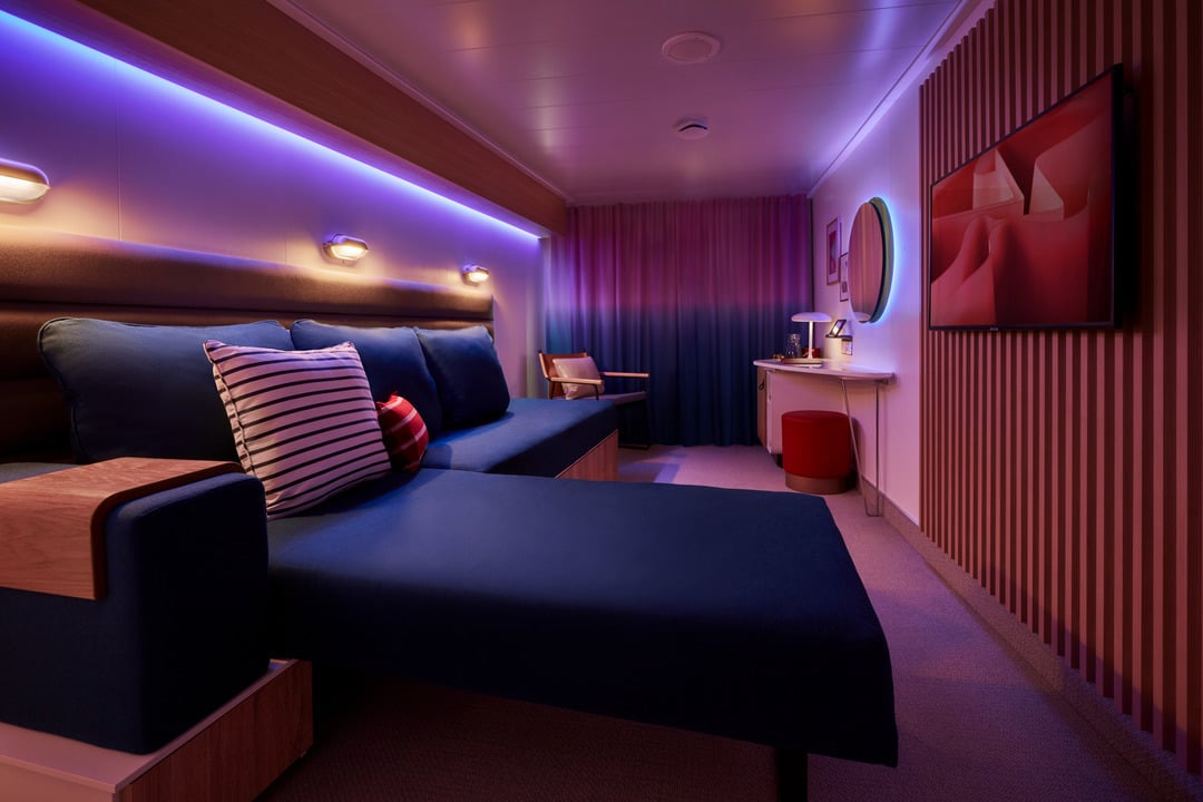 The Central Sea Terrace is part of the Sea Terrace cateogry of cabins on Virgin Voyages Scarlet Lady, Valiant Lady, Resilient Lady, and Brilliant Lady ships.