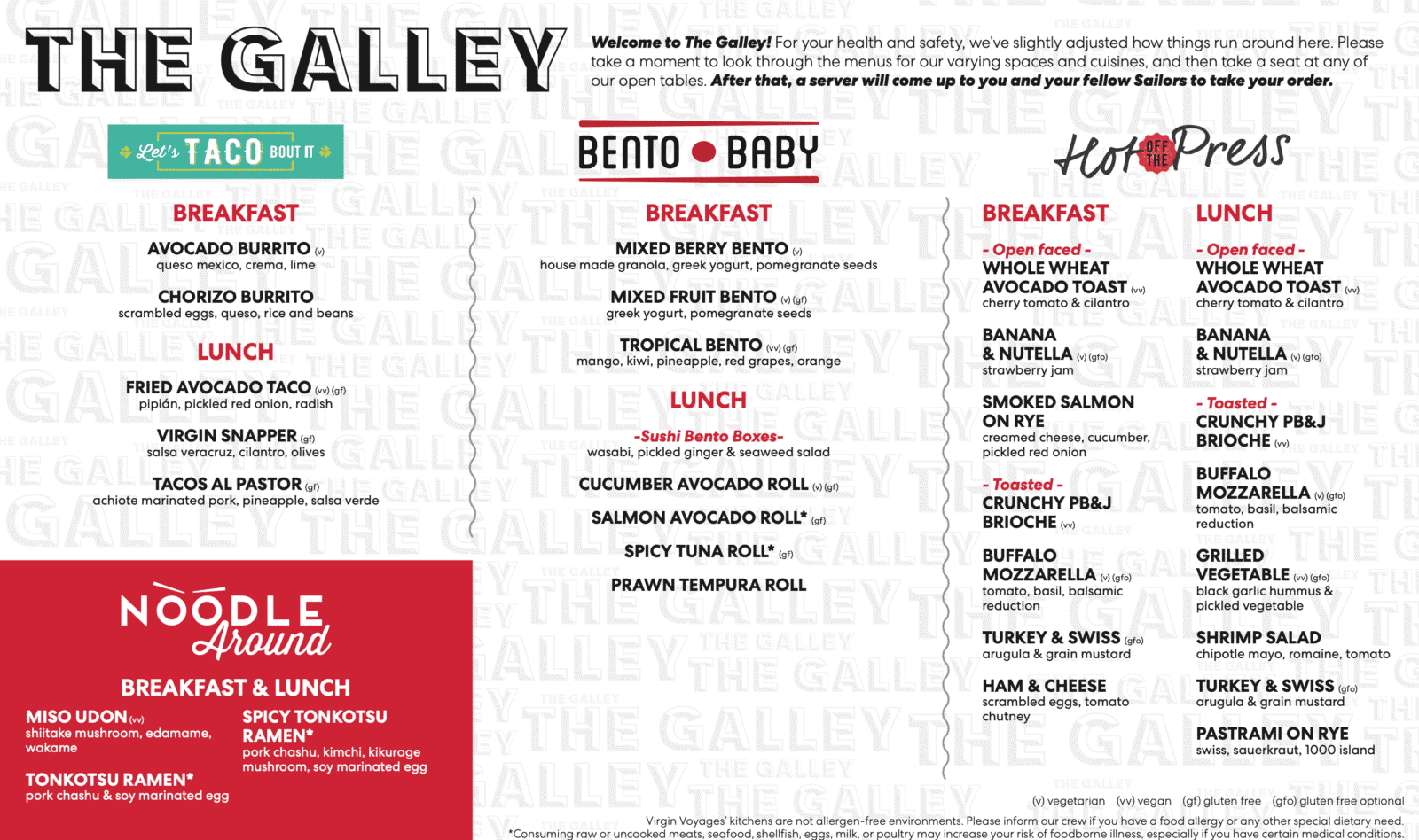 This 24-hour in-cabin delivery service brings curated comfort food and favorites straight to your door through the Virgin Voyages app.